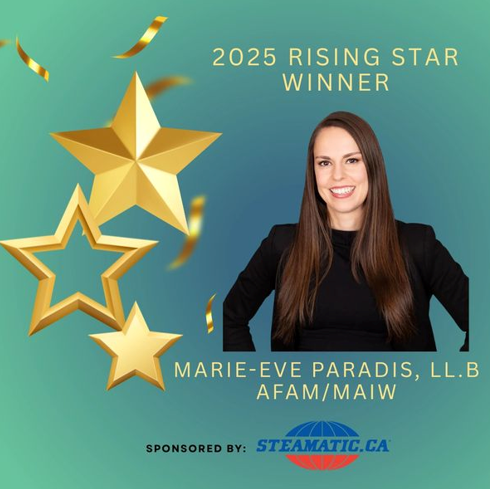 Congratulations to Me Marie-Ève Paradis, who received the Rising Star Award sponsored by Steamatic at the ACFA Conference! A first for Quebec, we are very proud to highlight that she is one of AFAM’s members.